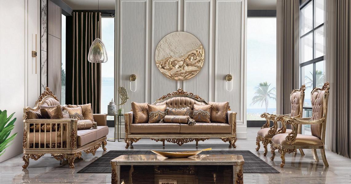 Erleben Sie puren Luxus in Ihrem Wohnzimmer mit dem Sessel Wohnzimmer Klassisch Design in Gold von XL Möbel. Dieser elegante Sessel besticht durch sein klassisches Design und seine edle Ausstrahlung. Hergestellt aus hochwertigem Holz und bedeckt mit luxuriösem Textil, wird dieses Möbelstück zum Blickfang in jedem Raum. Die geschwungenen Formen und die goldenen Akzente verleihen dem Sessel eine königliche Note. Mit Maßen von ca. 85 x 80 x 135 cm bietet dieser Sessel nicht nur eine bequeme Sitzgelegenheit, sondern auch ein atemberaubendes Designelement. Die Sitzhöhe von ca. 44 cm und die Sitztiefe von ca. 56 cm sorgen für höchsten Komfort. Genießen Sie den Luxus und die Eleganz eines klassisch gestalteten Sessels in Ihrem Zuhause. Bestellen Sie jetzt den Sessel Wohnzimmer Klassisch Design in Gold und verwandeln Sie Ihr Wohnzimmer in einen königlichen Palast.