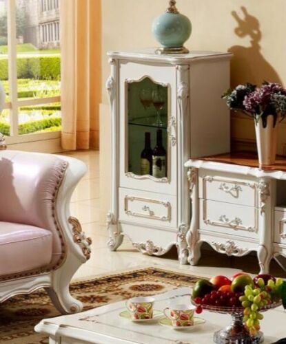 Vitrine Luxus Schrank Holz Stil Weiß Glas Neu Schränke Glasschrank