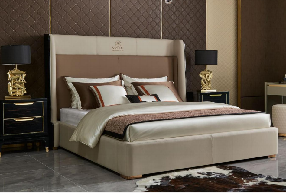 Entspannen Sie in Luxus und Stil mit unserem Bett Schlafzimmer Set Design Möbel Luxus Betten! Dieses exquisite Set besteht aus einem eleganten Bettgestell und zwei stilvollen Nachttischen, die perfekt in Ihr Schlafzimmer passen. Das Bett verfügt über eine großzügige Liegefläche von ca. 180 x 200 cm und beeindruckt mit seinen Maßen von ca. 237 x 215 x 148 cm. Gefertigt aus hochwertigem Holz, Edelstahl und Leder, bietet es nicht nur Komfort, sondern auch Langlebigkeit. Die beiden Nachttische sind jeweils ca. 60 x 65 x 45 cm groß und bieten genügend Stauraum für Ihre persönlichen Gegenstände. Das Design in der Farbe wie abgebildet verleiht Ihrem Schlafzimmer eine luxuriöse Note. Erleben Sie erholsame Nächte und einen Hauch von Eleganz in Ihrem Schlafzimmer mit diesem exquisiten Bett Schlafzimmer Set. Gönnen Sie sich das Beste und bestellen Sie noch heute!
