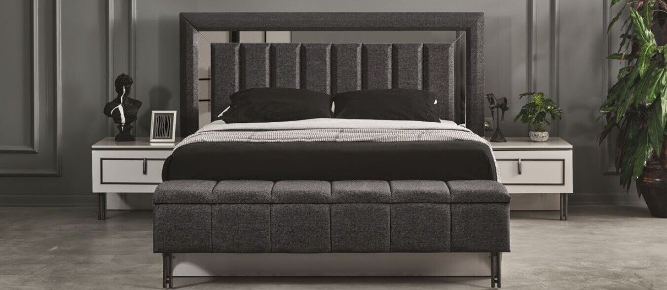 Schlafzimmer Set Modern Bett und 2x Nachttische Luxus Komplette Sets 3tlg