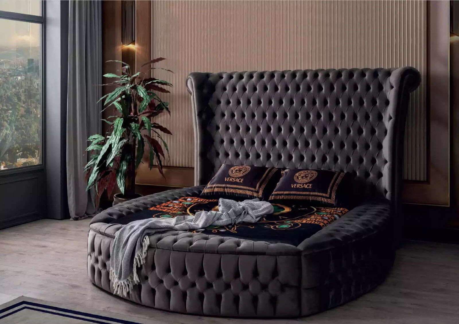 Bett Chesterfield Polsterbett Luxus Schlafzimmer Design Betten Textil Samt Neu