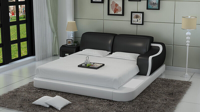 Design Bett XXL Big Betten Hotel Polster 200x200 Multifunktion Regal USB Leder