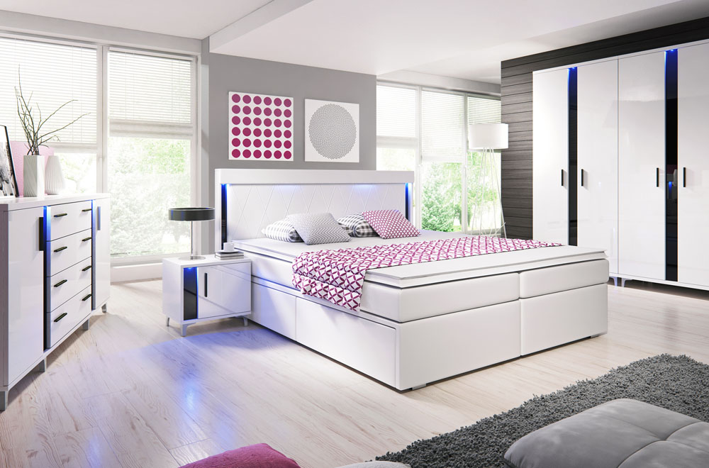 Schlafgarnitur, Bett, Nachttische, Kommode, Schrank, kaufen, preiswert, modernes Design, Schlafzimmer, Holz