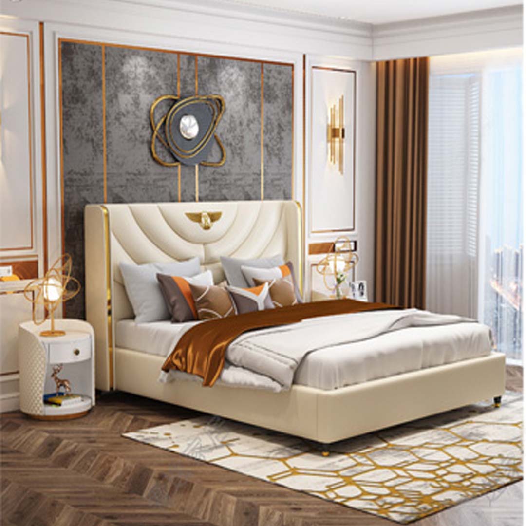 Entspannen Sie in purem Luxus mit unserem Holz Design Bett Doppel von XL Moebel. Dieses moderne Bettgestell ist perfekt für das Schlafzimmer eines Luxushotels oder für Ihr Zuhause geeignet. Hergestellt aus hochwertigem Holz und Kunstleder, bietet dieses Bett eine Liegefläche von 180 x 200 cm, ideal für erholsame Nächte. Die Maße betragen ca. 202 cm Länge, 125 cm Höhe und 208 cm Breite. Die elegante Farbe und das stilvolle Design machen dieses Bett zu einem echten Hingucker. Gönnen Sie sich den Komfort und die Eleganz, die Sie verdienen, mit unserem modernen Holz Design Bett Doppel.