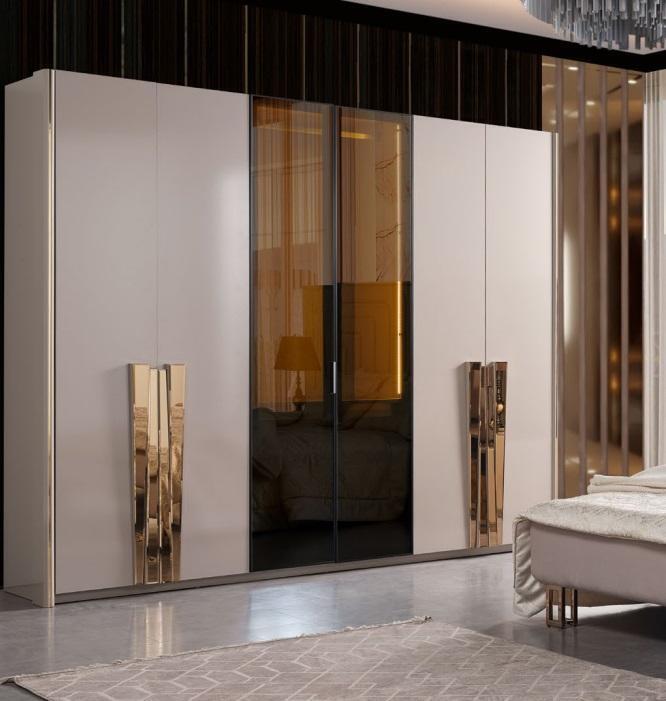 Kleiderschrank Moderne Schrank Schlafzimmer Schränke Beige Holz Gold