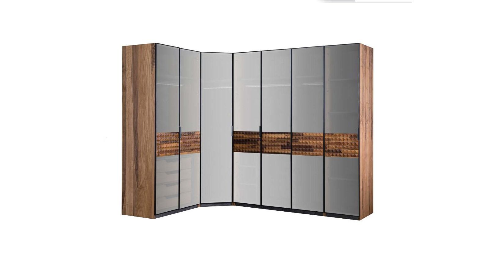 Eckschrank Schlafzimmerschrank Kleiderschrank Holz Braun Spiegel Groß