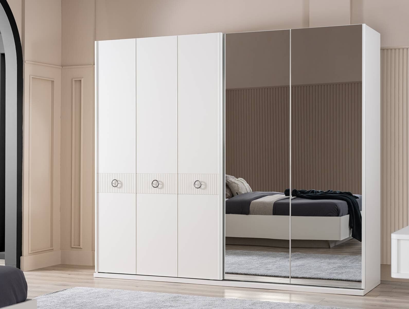 Garnitur Doppelbett Bettrahmen Stoff Schlafzimmer Weiß Holz Set 7tlg
