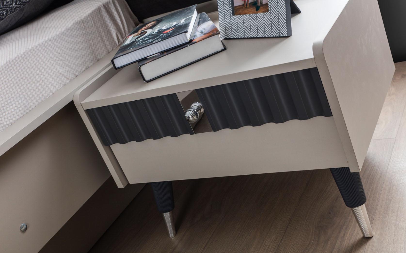 Graue Schlafzimmer Möbel Designer Bett 2x Nachttische Holz Schrank 4tlg