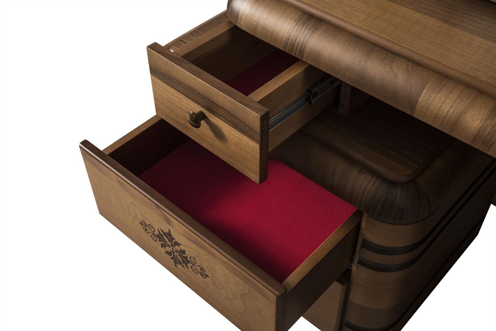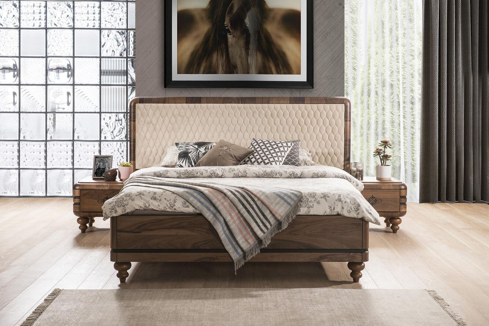 Klassisches Schlafzimmer Set Luxus Braunes Bett Nachttische Schminktisch
