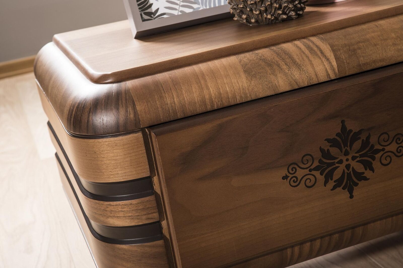 Erleben Sie Luxus und Stil mit unserem klassischen Schlafzimmer Set in hellem Holz von XL Moebel! Das Set besteht aus einem braunen Bett mit einer großzügigen Liegefläche von ca. 180 x 200 cm, zwei Nachttischen und einem eleganten Schminktisch. Die Maße des Bettes betragen ca. 260 x 233 x 120 cm, der Nachttische ca. 65 x 45 x 45 cm und der Schminktisch ca. 150 x 45 x 86 cm. Hergestellt aus hochwertigem Holz in der Farbe wie abgebildet, strahlt dieses Set Luxus und Eleganz aus. Bringen Sie mit diesem Schlafzimmer Set einen Hauch von Glamour in Ihr Zuhause!
