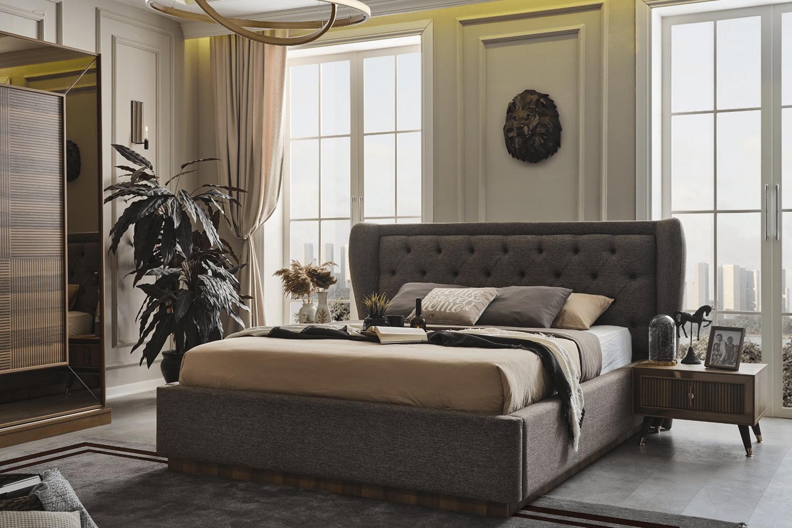 Entspannen und träumen Sie in diesem stilvollen Schlafzimmer-Set! Die Schlafzimmergarnitur umfasst ein gemütliches Polsterbett, zwei elegante Nachttische und einen geräumigen Kleiderschrank - alles, was Sie für Ihre persönliche Ruheoase benötigen. Das Bett misst ca. 186 x 220 x 116 cm und bietet eine komfortable Liegefläche von ca. 160 x 200 cm. Die beiden Nachttische haben Maße von ca. 60 x 46 x 40 cm und der geräumige Kleiderschrank ist ca. 261 x 66 x 220 cm groß. Das Set ist in einem ansprechenden Design gehalten und überzeugt mit hochwertigen Materialien wie Holz, Glas und Textil. Gönnen Sie sich diesen Luxus und bestellen Sie noch heute Ihr Schlafzimmer-Set in der abgebildeten Farbe!