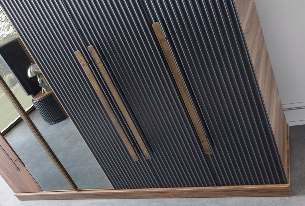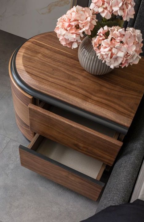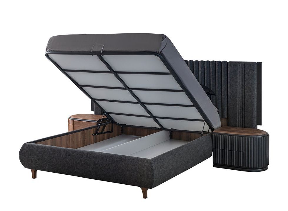 Schwarz-Beige Schlafzimmer Garnitur Designer Doppelbett 2x Nachttische
