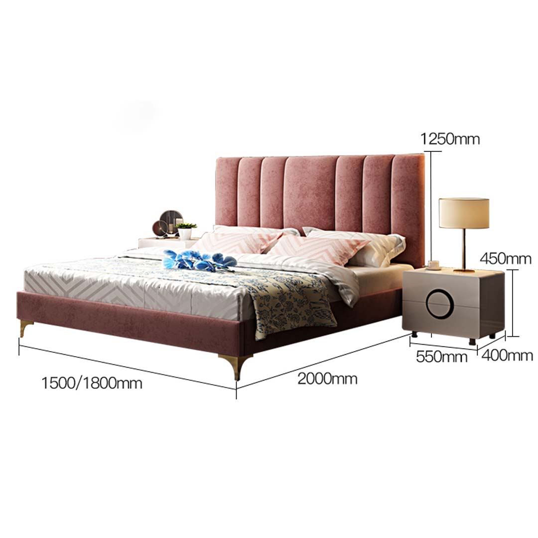 Erleben Sie ultimativen Luxus in Ihrem Schlafzimmer mit diesem modernen 3-teiligen Set von Luxus Schlafzimmer Möbeln. Das Set besteht aus einem eleganten Bett und zwei stilvollen Nachttischen. Das Bett hat eine großzügige Liegefläche von ca. 180 x 200 cm und beeindruckt mit Maßen von ca. 208 x 200 x 131 cm. Die passenden Nachttische sind jeweils ca. 55 x 45 x 40 cm groß. Hergestellt aus hochwertigem Holz und Textil in ansprechender Farbe, wird dieses Set Ihrem Schlafzimmer ein exquisites Ambiente verleihen. Gönnen Sie sich eine Wohlfühloase und bestellen Sie noch heute!