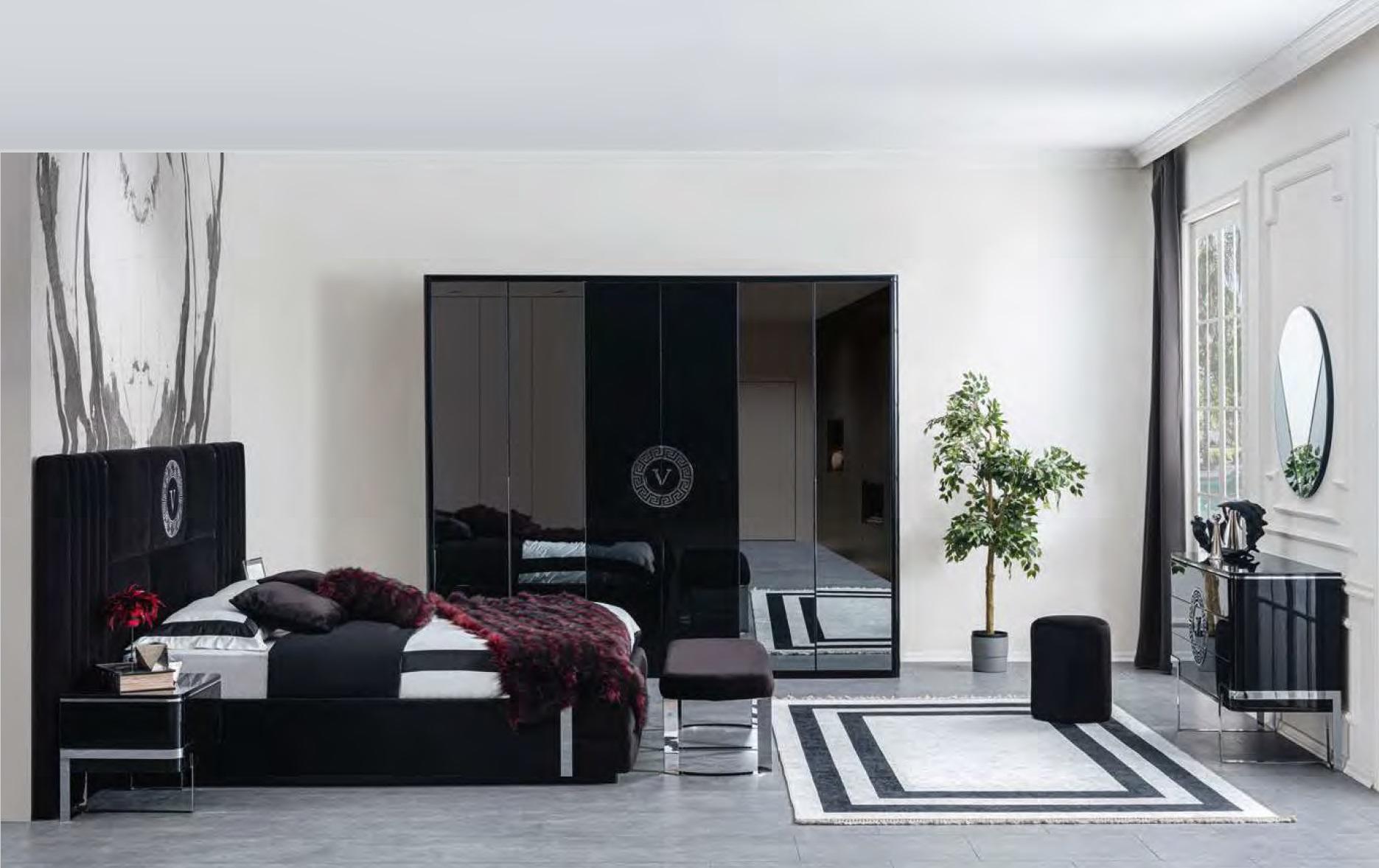 Mit Mauszeiger heranzoomen Sie haben so einen Artikel? Gebührenfrei verkaufen Schwarzer Kleiderschrank Luxus Glastüren Viertürig Schlafzimmer Möbel Schrank