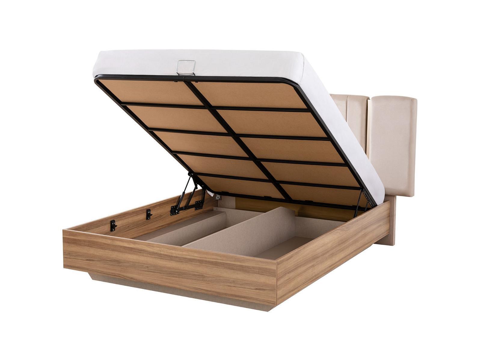Bettrahmen Bett Doppelbett mit Bettkasten Beige Stoff Luxus Modern