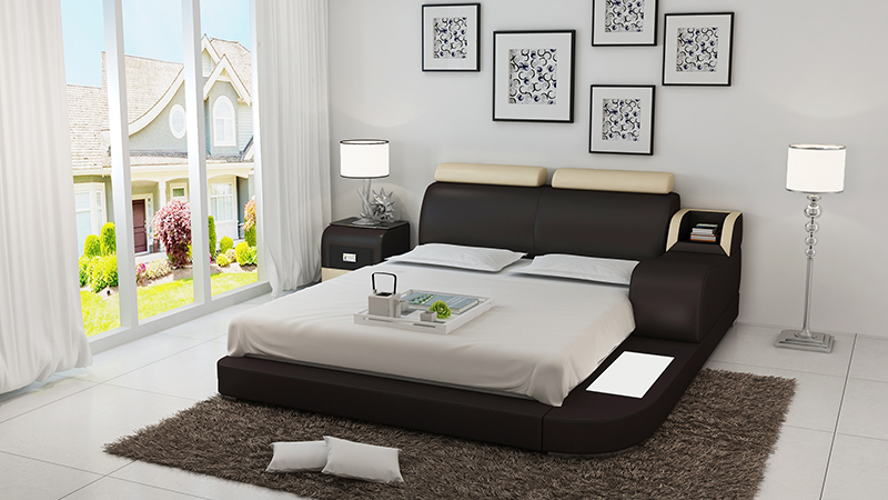 Design Bett XXL Big Betten Leder Hotel Polster 160x200cm Multifunktion Regal USB