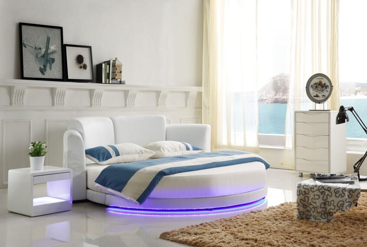 Designer Bett Betten Polsterbett Rundbett 200x200 Ehebett Doppelbett LED