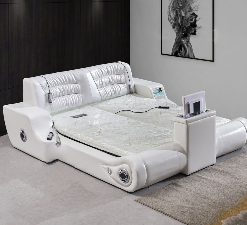 Entdecken Sie das Doppel Luxus Design Weiß Bett - ein modernes und multifunktionales Polsterbett für Ihr Zuhause oder Hotel. Mit einer Matratzenaufliegefläche von ca. 180cm x 200cm und einem Bettmaß von ca. 244cm x 245cm x 90cm bietet dieses Bett genügend Platz zum Entspannen. Das Besondere an diesem Bett ist die Möglichkeit der individuellen Gestaltung. Wählen Sie aus einer Vielzahl von Farben unter dem Reiter "Farben" aus, um das Bett perfekt an Ihren Einrichtungsstil anzupassen. Sie haben auch die Möglichkeit, Premium Materialien wie Kunstleder, Lederfaserstoff, Echtleder oder Textilstoff gegen Aufpreis zu wählen. Das hochwertige Premium Echtleder stammt aus Italien und hat eine Dicke von bis zu 2,50mm, was für Langlebigkeit und Eleganz sorgt. Lassen Sie sich von der Qualität und dem Design dieses Luxus Bettes überzeugen und holen Sie sich ein Stück Hotelkomfort in Ihr Schlafzimmer. Bündeln Sie stilvolle Möbel aus unserem umfangreichen Angebot wie Bett, Schlafzimmerbett, Doppelbett, Einzelbett, Boxspringbett, Futonbett, Holzbett, Metallbett und mehr.