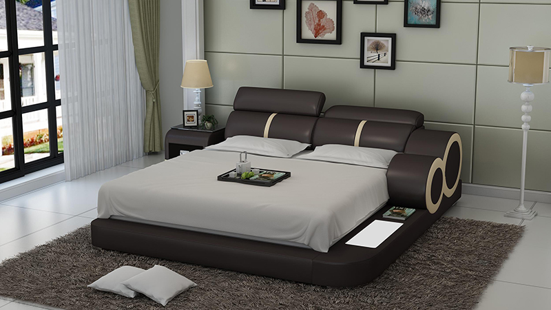 Design Bett XXL Big Betten Leder Polster Hotel 160x200cm Multifunktion Regal USB