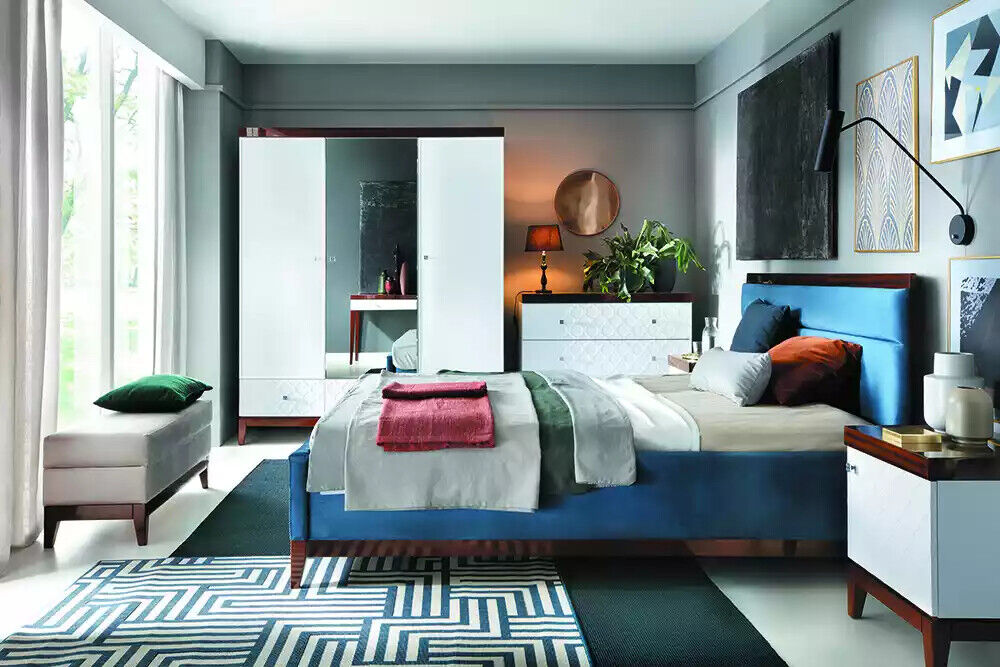 Bett Schlafzimmer Luxus möbel in blauer Farbe Neuheit für Ihre Innenräume