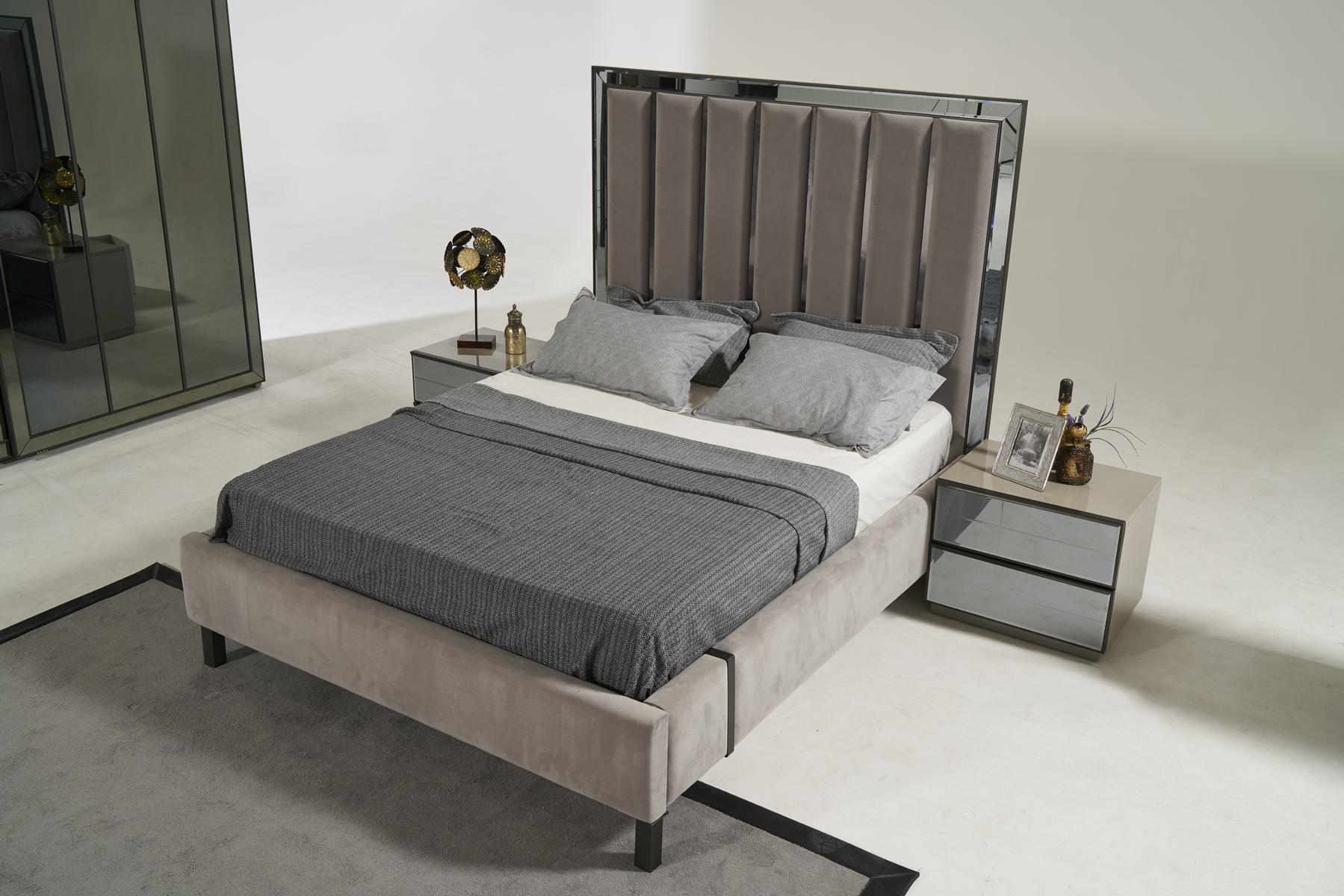 Betten Design Bett Polster Schlafzimmer Hotel Design Doppelbett Metall Taupe Neu