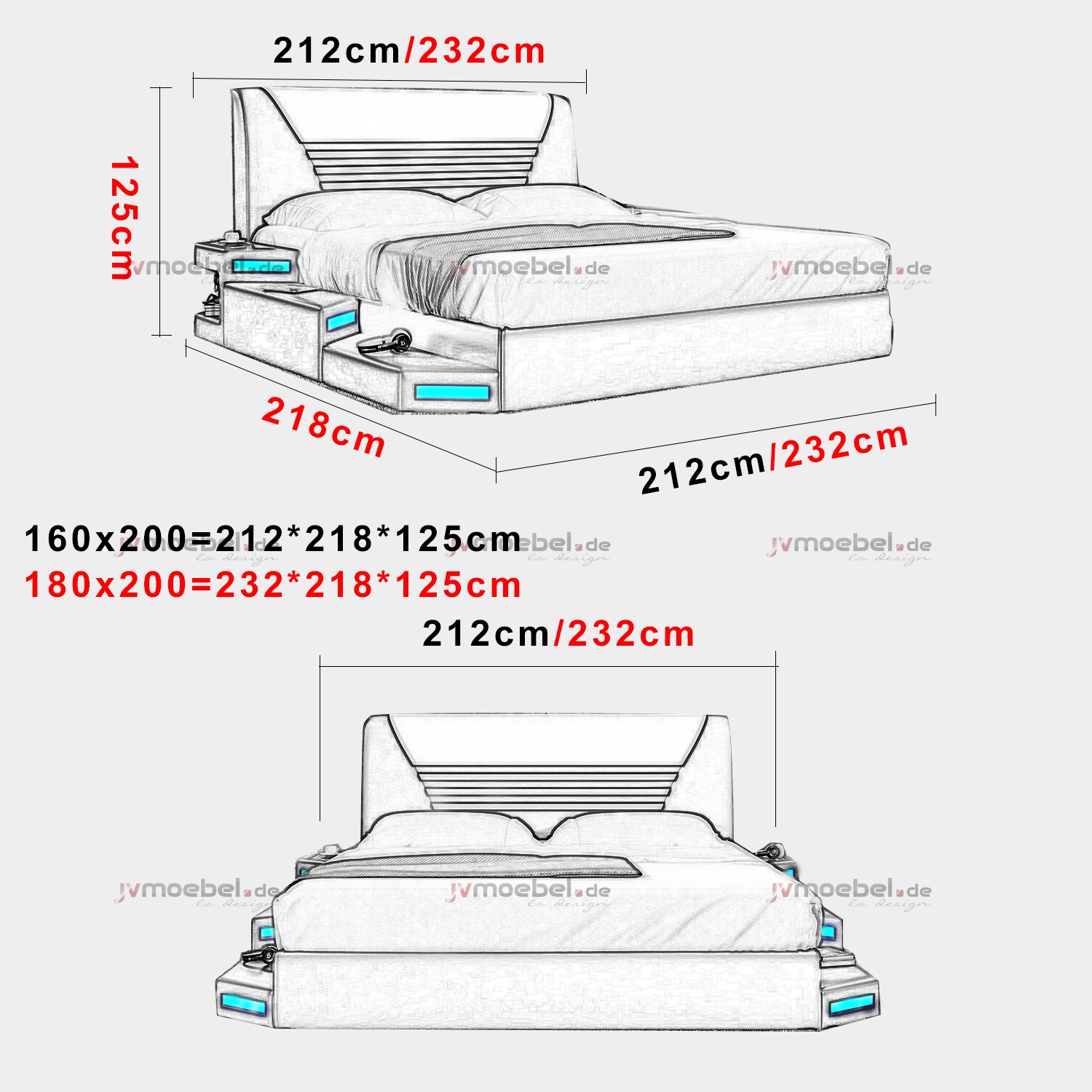 Liegefläche: 180 x 200 cm