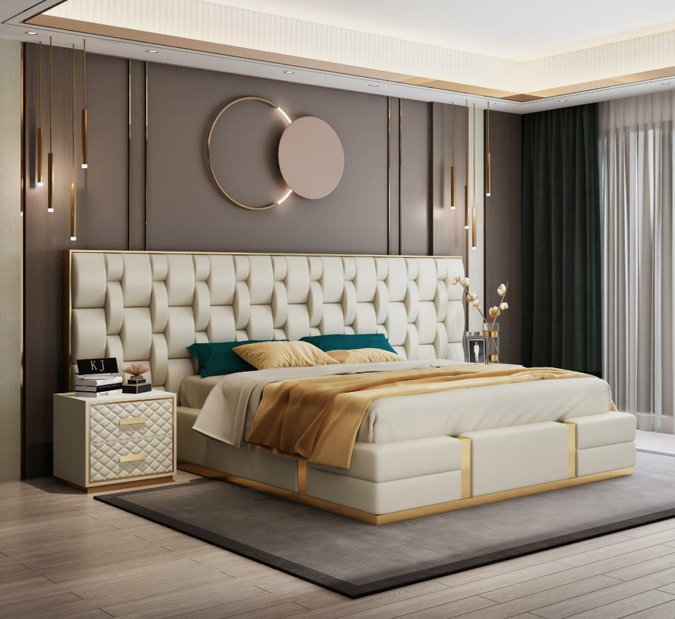 Edelstahl Luxus Bett Metall Leder Betten Hotel Chesterfield 180x200