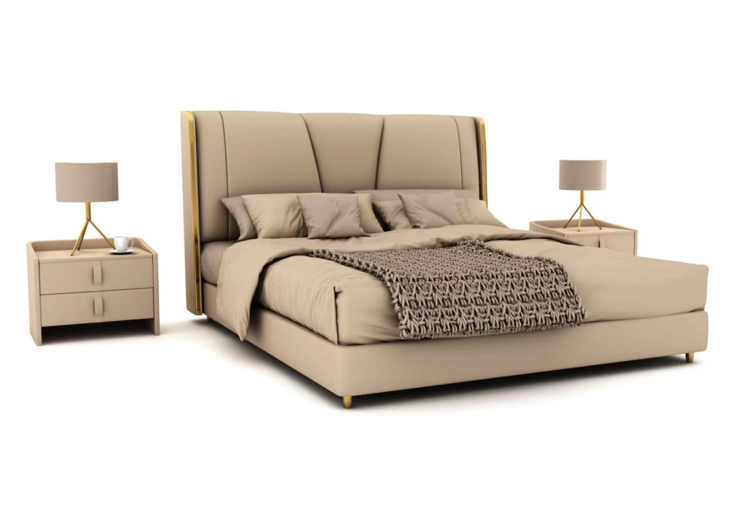 Schlafzimmer Designer Beiges Bett Doppelbetten LED-Betten Lederbetten