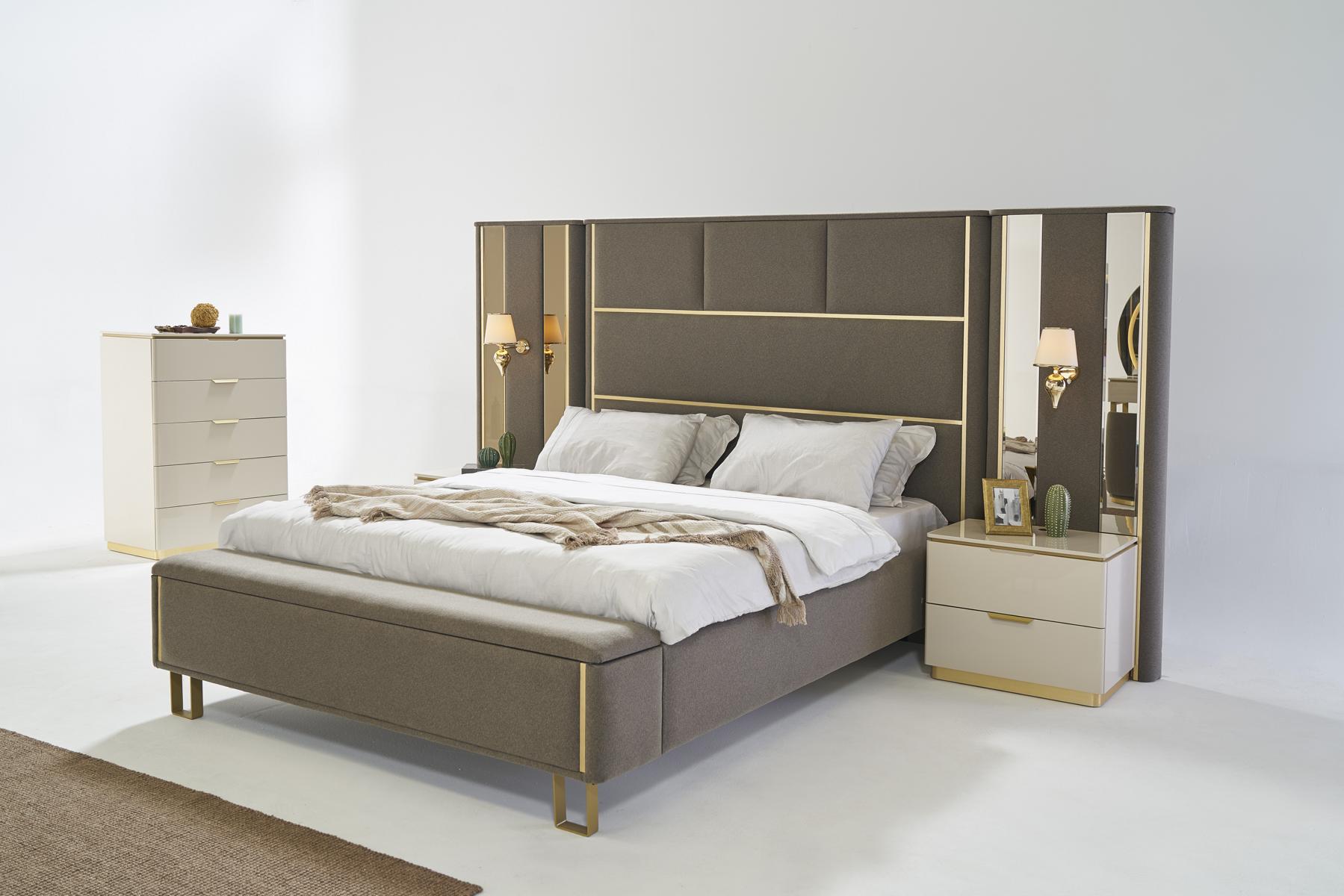 Taupe Polster Betten Doppelbett Holz Schlafzimmer Möbel Hotel Polster 180x200