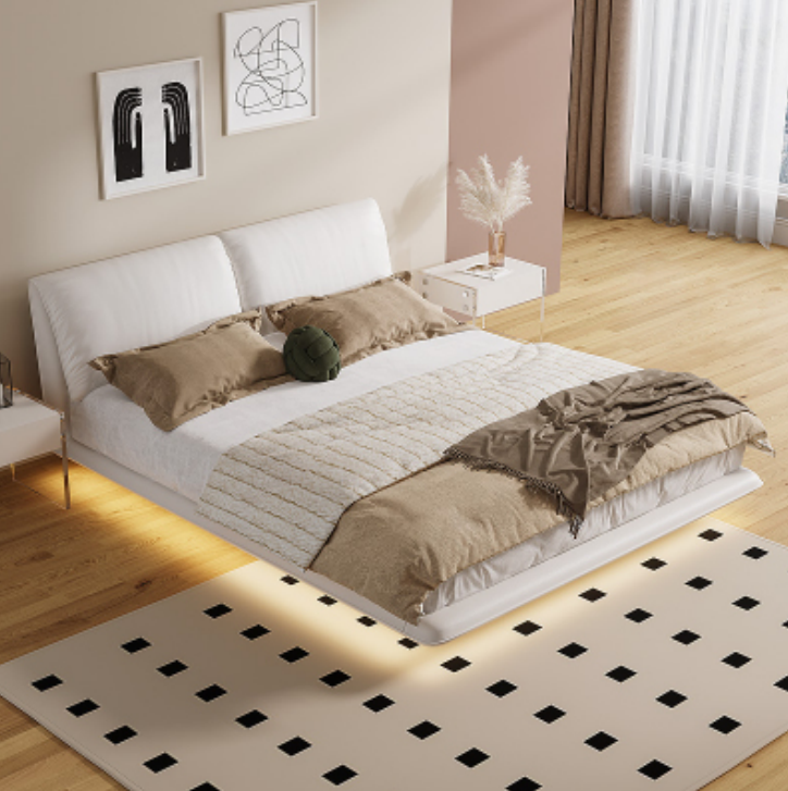 Weißes Schlafzimmer Bett Designer Textilbetten Luxus Holz Doppelbetten
