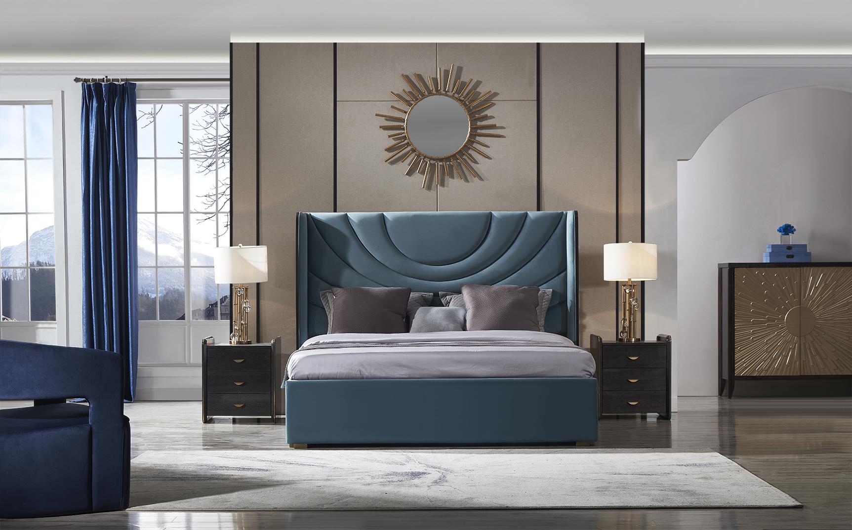 Wunderschönes Doppelbett mit gepolstertem Kopfteil im modernen Stil