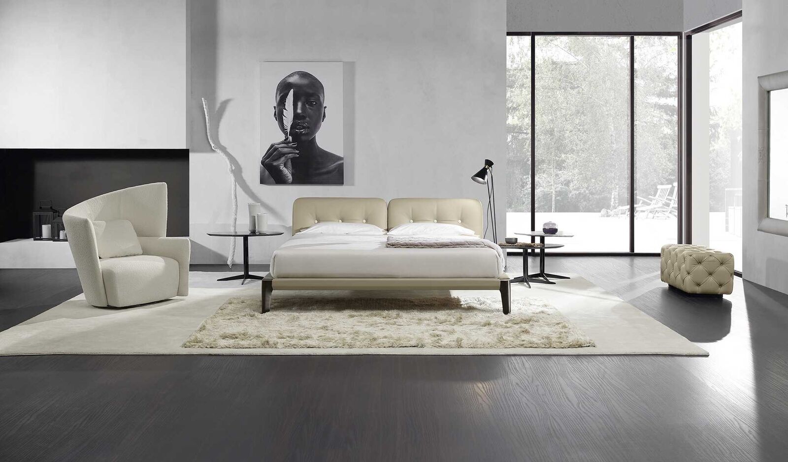 Moderne Doppelbett, Schlafzimmer, Beige, Bett