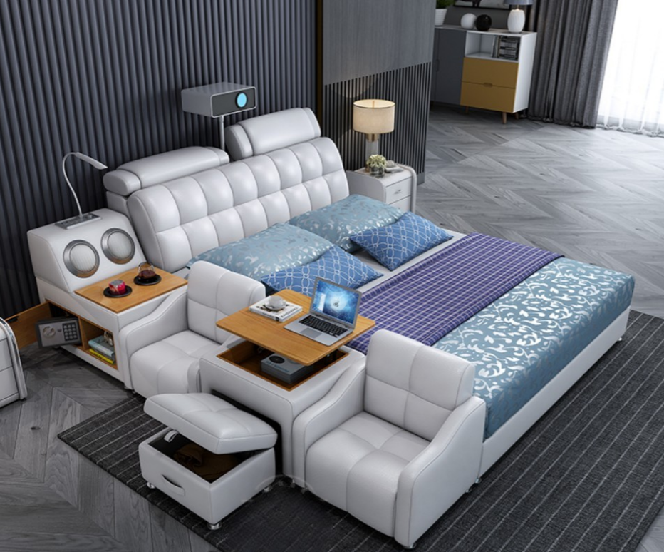 Multifunktions Bett Boxen Luxus Design Leder Betten Hotel Doppel Neu