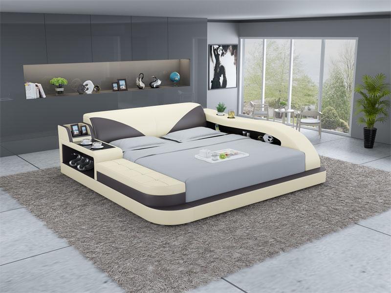 Multifunktions Bett Luxus Design Leder Betten Doppel Ablage Regal 180x200