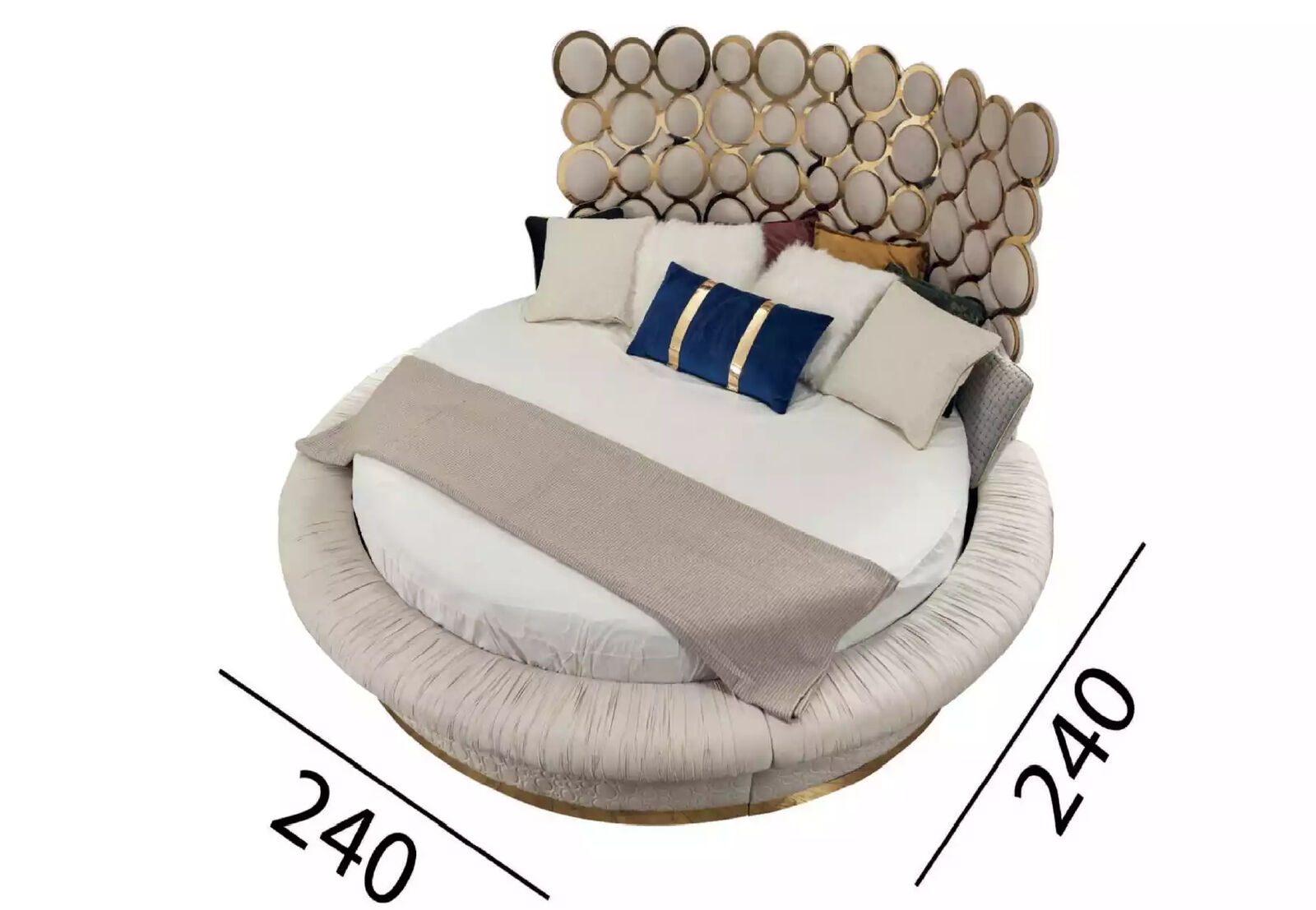 Entspannen Sie in Luxus mit unserem runden Bett im extravaganten Design! Das Bett ist ideal für Ihr Schlafzimmer und verleiht dem Raum ein Hauch von Eleganz und Stil. Hergestellt aus hochwertigem Holz und Samt, bietet dieses Doppelbett nicht nur Komfort, sondern auch Langlebigkeit. Die Maße von ca. 240 x 240 x 158 cm sorgen für ausreichend Platz zum Entspannen und Schlafen. Gönnen Sie sich ein Stück Luxus von XL Moebel - Bestellen Sie jetzt!