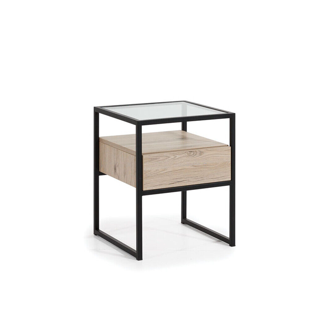 Schlafzimmer Moderner Nachttisch Glasplatte Metallgestell Holz Möbel