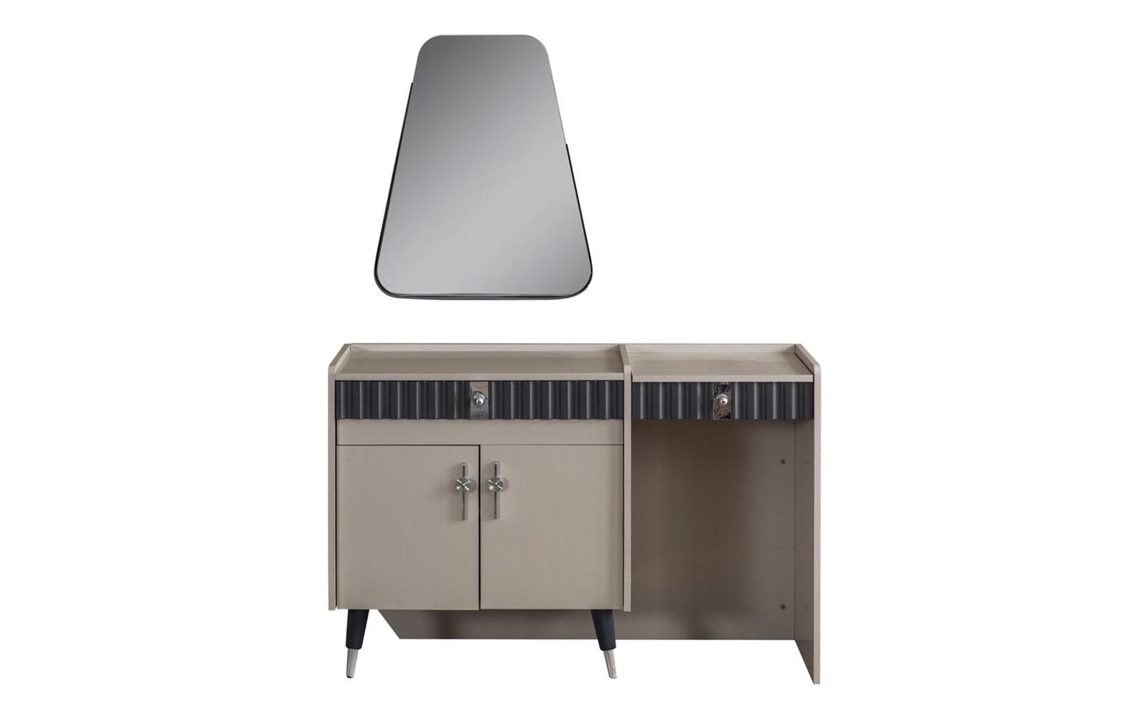 Beiger Schminktisch Holz Kosmetiktisch Designer Konsole Spiegel 2tlg