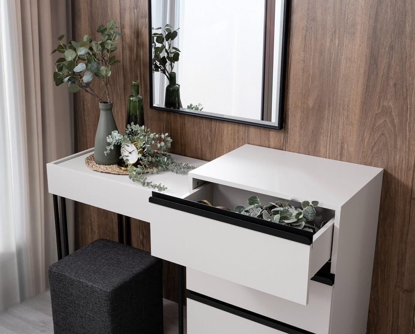 Schminktisch Frisiertisch Konsoletisch Kommode Spiegel Set 3tlg Weiß