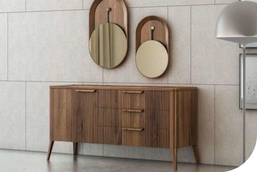 Walnuss Natur, Toros, Schwarzer Marmor, Kommode, Luxus Wohnzimmermöbel, Exklusives Design