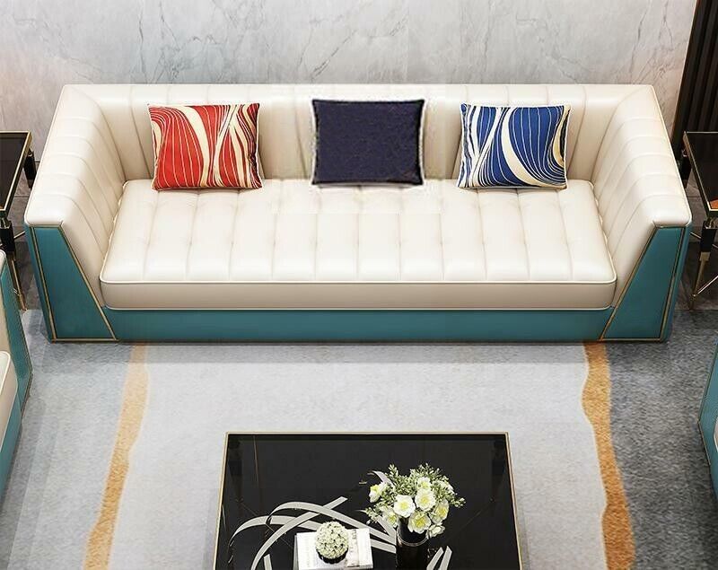 Erleben Sie pure Eleganz mit unserer exklusiven Edelstahl Design Möbel 3+1 Sitzer Hocker Couch Polster Garnitur! Hergestellt aus hochwertigem Premium Lederfaserstoff (70% Leder / 30% Polyester) bietet dieses Set nicht nur Komfort, sondern auch Stil in Ihrem Zuhause. Mit Maßen von ca. 218 x 100 x 90 cm für den 3-Sitzer und ca. 118 x 100 x 90 cm für den Sessel garantiert dieses Möbelstück eine perfekte Passform für Ihr Wohnzimmer. Entscheiden Sie sich für Ihre Lieblingsfarbe aus einer Vielzahl von Optionen oder fragen Sie uns nach weiteren Farb- und Größenanpassungen. Optional im Shop bieten wir verschiedene Materialgruppen an, darunter Premium Echtleder, Premium Textilstoff und Premium Vollleder. Jede Gruppe verleiht Ihrem Sofaset einen eigenen Charme und wirkt als Blickfang in jedem Raum. Ergänzen Sie Ihr Zuhause mit einem Hauch von Luxus und holen Sie sich noch heute Ihre Edelstahl Design Möbel 3+1 Sitzer Hocker Couch Polster Garnitur!