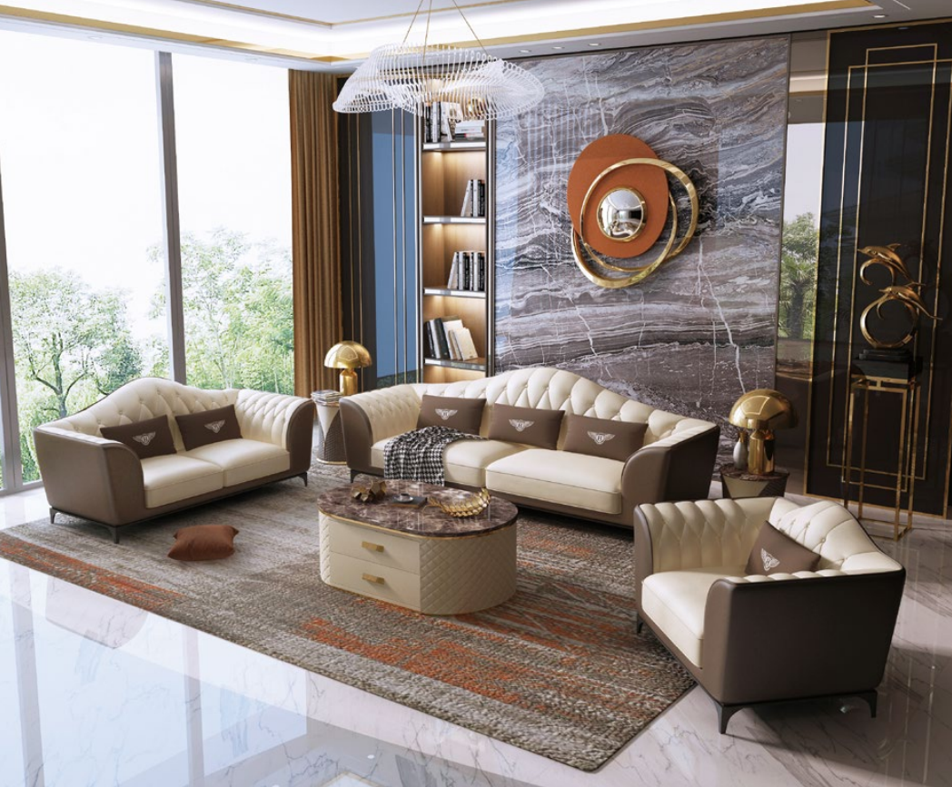 Entdecken Sie unser exklusives Komplett Set Sofagarnitur 3+2+1 Design Ledersofa Ledergarnitur Couchen! Diese hochwertige Sofagarnitur bietet nicht nur Stil, sondern auch Komfort in Ihrem Wohnzimmer. Jedes Element - der 3-Sitzer, der 2-Sitzer und der 1-Sitzer - ist sorgfältig gefertigt und mit echtem Leder bezogen. Dank unserer großen Auswahl an Farben können Sie Ihre individuelle Farbgestaltung wählen, sei es schickes Schwarz, elegant Rot, zeitloses Blau oder eine der vielen anderen Optionen. Die Möglichkeit, die Material- und Metallfarbe anzupassen, ermöglicht es Ihnen, Ihre Einrichtung perfekt zu personalisieren. Die Maße der Garnitur sind präzise angegeben, damit Sie sicher sein können, dass sie in Ihr Wohnzimmer passt. Zudem bietet das Innengestell aus echtem Holz und der Unterfeder mit Federkern eine solide Basis für langanhaltenden Komfort. Lassen Sie sich von uns beraten und bestellen Sie noch heute Ihre individuelle Sofagarnitur nach Maß - für ein Wohnzimmer, das Ihren persönlichen Stil unterstreicht. Machen Sie Ihr Zuhause mit unserer Ledersofa Garnitur zu einem Ort des Wohlfühlens!