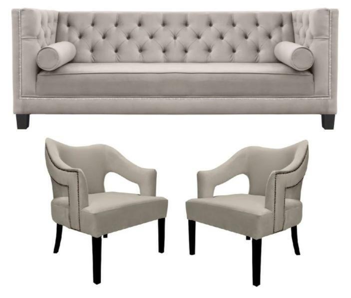 Beige Chesterfield Sofagarnitur Polster Sitz Garnituren 3tlg Set Gruppe