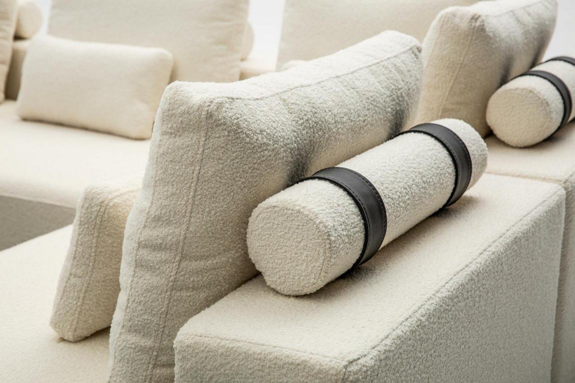 Modernes Set für Wohnzimmer, L-förmiges Ecksofa, Sessel, Sektionssofas