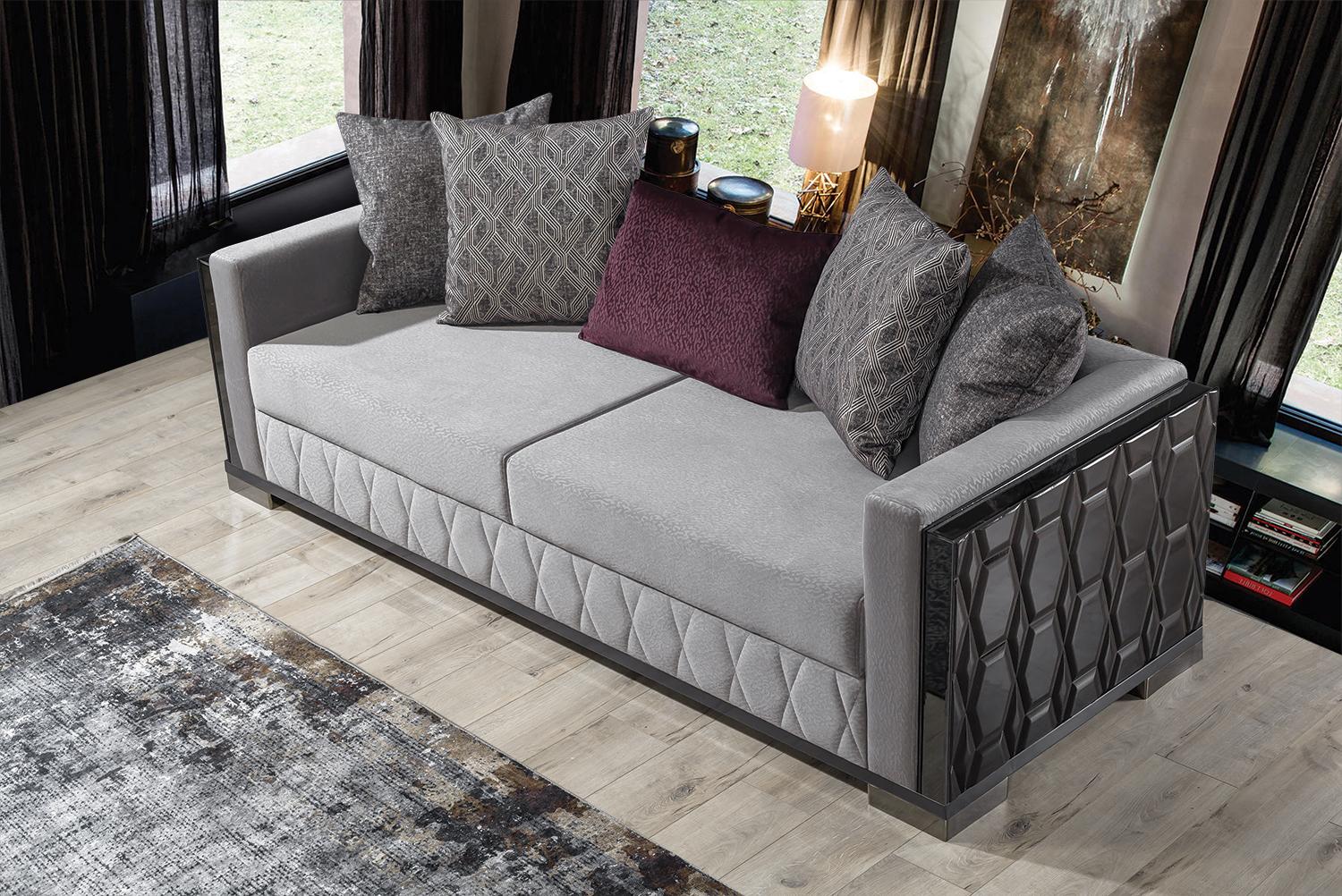 Entdecken Sie unsere moderne Luxus Sofagarnitur, bestehend aus einem geräumigen 3-Sitzer-Sofa und einem gemütlichen Sessel. Das stilvolle Design dieser Garnitur wird jeden Raum in Ihrem Zuhause aufwerten. Ausgestattet mit Metallgestell und hochwertigem Textilbezug, bietet Ihnen dieses Set den perfekten Komfort zum Entspannen und Genießen. Die Maße des 3-Sitzers betragen ca. 233 x 90 x 68 cm und die des Sessels ca. 79 x 80 x 68 cm. Erhältlich in verschiedenen Farben auf Anfrage, um Ihren persönlichen Stil zu ergänzen. Bringen Sie mit unserer Sofagarnitur Eleganz und Luxus in Ihr Zuhause!