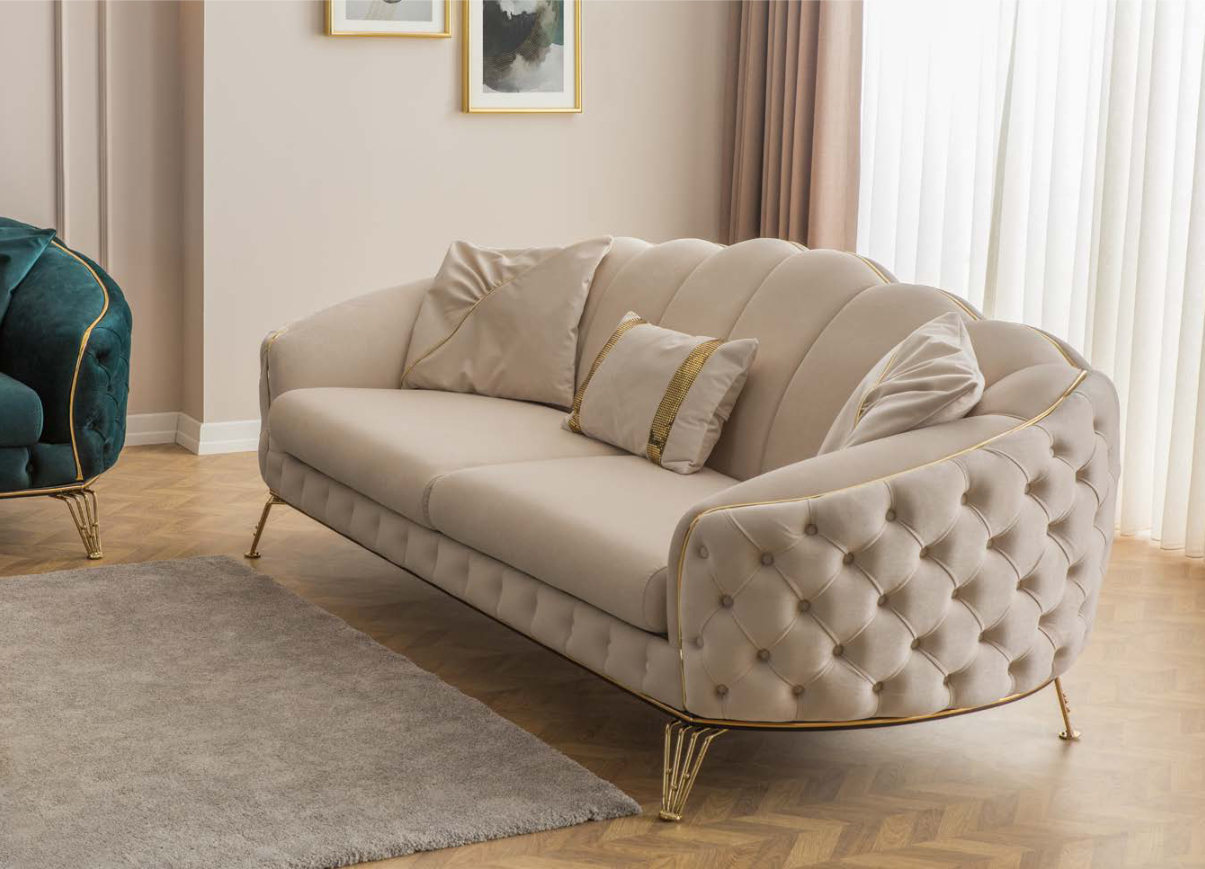 Entdecken Sie die moderne Chesterfield Beige Wohnzimmer Sofagarnitur x2, bestehend aus 3-Sitzer Polstersesseln! Diese hochwertige Sofagarnitur bietet nicht nur Komfort, sondern auch ein stilvolles Design für Ihr Zuhause. Die Maße der Sofas betragen ca. 247 x 105 x 90 cm, mit einer Sitzhöhe von ca. 44 cm und einer Sitztiefe von ca. 56 cm. Hergestellt aus Holz, Textil und Metall, bietet dieses Set sowohl Stabilität als auch Langlebigkeit. Die Farbe entspricht der Abbildung und fügt sich problemlos in jeden Wohnraum ein. Profitieren Sie von unserer großen Auswahl an Farben und Materialien für eine individuelle Anpassung nach Ihren Wünschen. Bestellen Sie jetzt Ihre Traumsofa-Garnitur und machen Sie Ihr Wohnzimmer zu einem gemütlichen Rückzugsort!