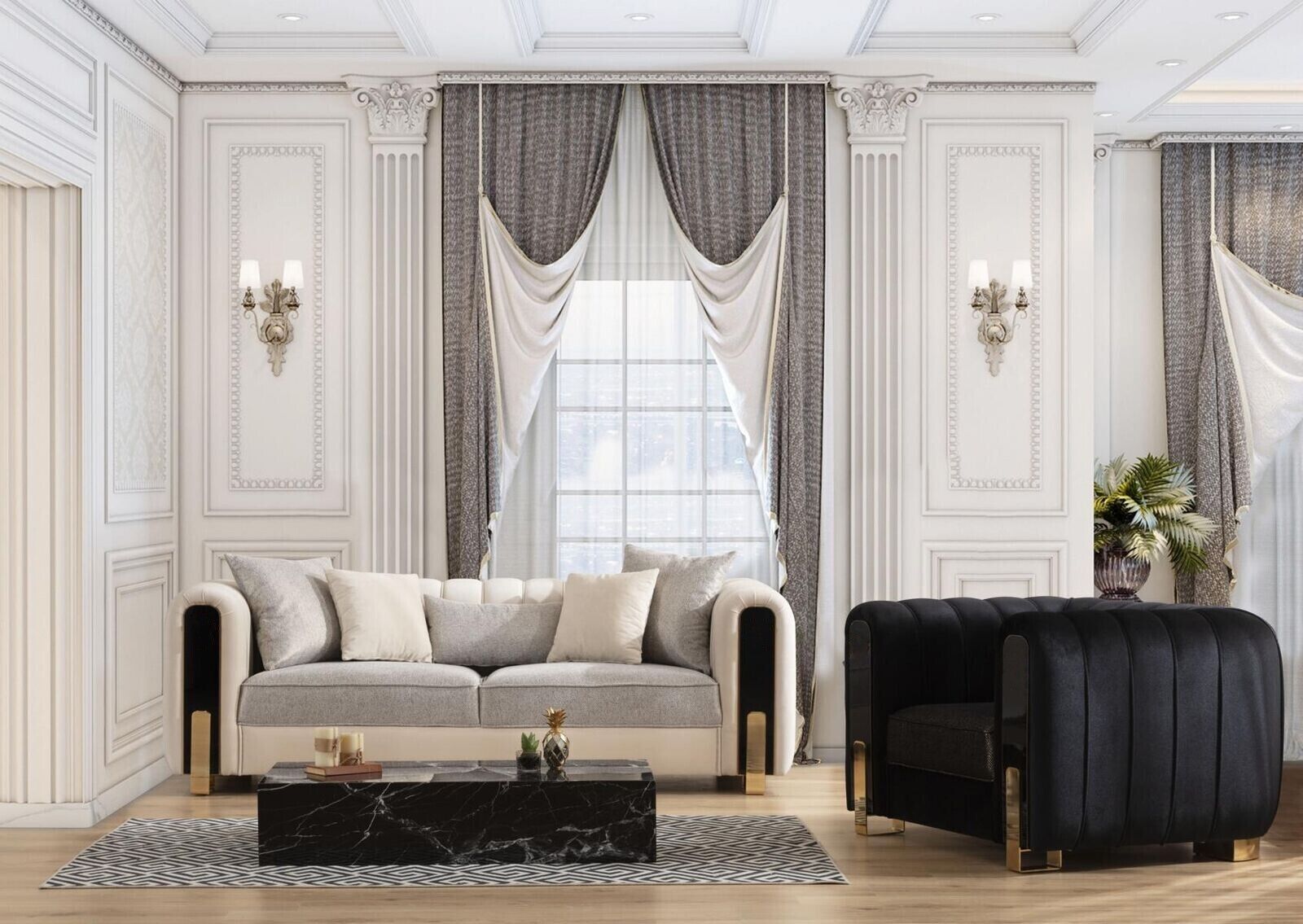 Moderne Couchgarnitur Dreisitzer Sessel Luxus Set Stoffsofas Luxus Möbel