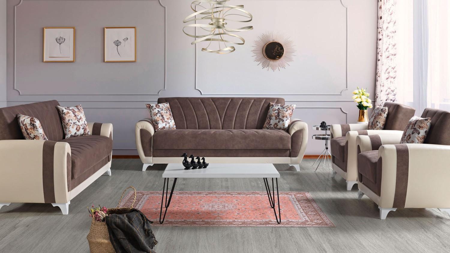 Schlafsofa Sofagarnitur 3+2+1+1 Sitzer Textil Sofa Sessel Komplett Set Braun
