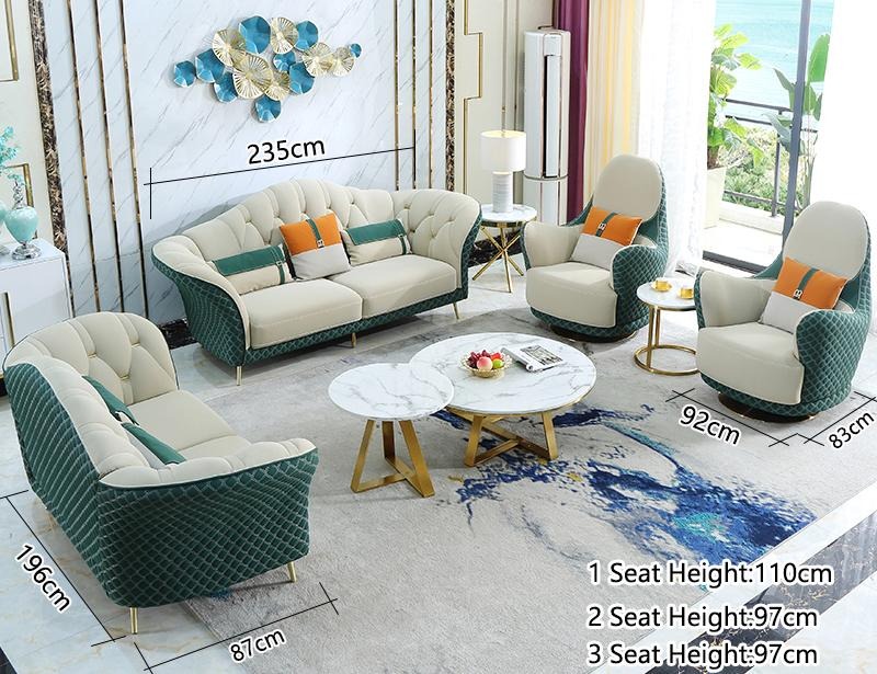 Entspannen Sie in Stil und Komfort mit unserer eleganten Sofagarnitur 3+2+1 Sitzer in edlem Lederdesign in den Farben Beige und Grün. Hergestellt aus Premium Lederfaserstoff (70% Leder / 30% Polyester) bietet diese Garnitur höchste Qualität und Langlebigkeit. Die Maße sind wie folgt: - 3 Sitzer: 235 x 87 x 82 cm - 2 Sitzer: 196 x 87 x 82 cm - Sessel: 92 x 83 x 82 cm Die Farbe ist frei wählbar, und auf Anfrage können auch andere Farben erhältlich sein. Optional können Sie zwischen verschiedenen Materialgruppen wählen, darunter Premium Echtleder und Premium Textilstoff gegen Aufpreis. Das Innengestell aus echtem Holz und das italienische Rindsleder machen diese Sofagarnitur nicht nur luxuriös, sondern auch strapazierfähig. Genießen Sie entspannte Stunden auf diesem stilvollen und hochwertigen Sofa. Nehmen Sie Platz und gönnen Sie sich Luxus für Ihr Zuhause mit dieser exquisiten Sofagarnitur!