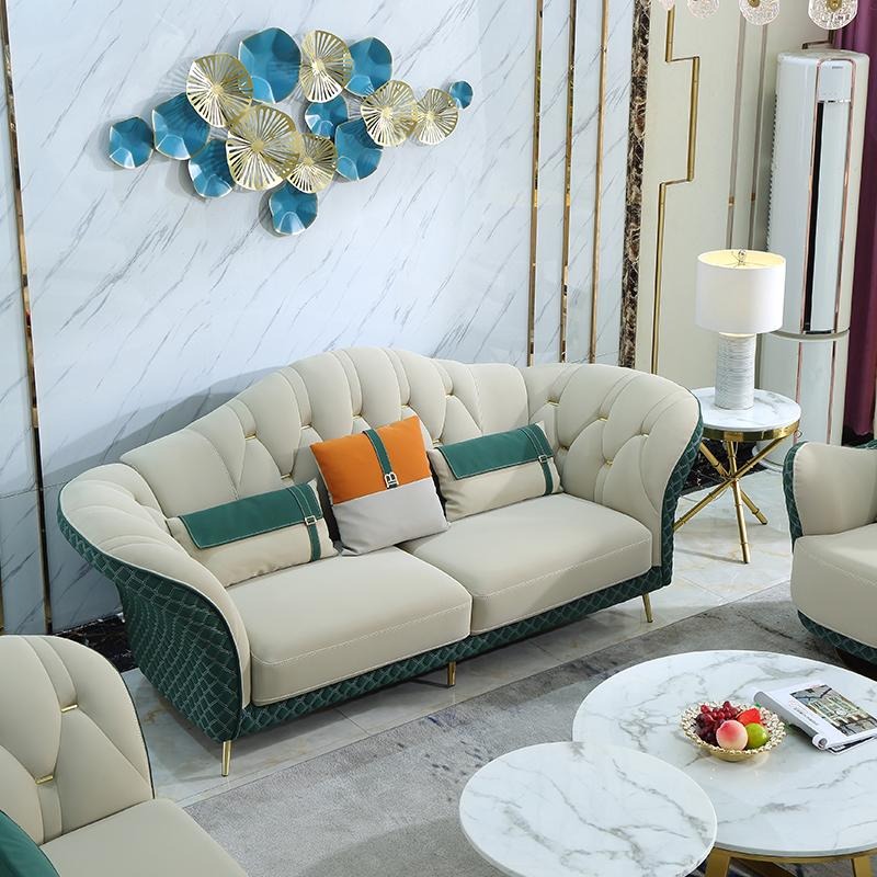 Sofagarnitur 3+2+1 Sitzer Leder Sofa Couch Garnitur Design Beige Grün