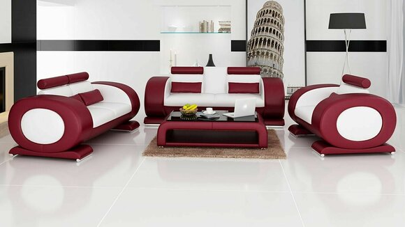 Entspannen Sie in Stil und Komfort mit unserer hochwertigen Sofagarnitur Ledersofa Couch! Hergestellt aus Premium Lederfaserstoff, bieten wir Ihnen die Möglichkeit, aus einer Vielzahl von Farben zu wählen, um Ihren Wohnraum zu verschönern. Mit einem 3-Sitzer, einem 2-Sitzer und einem gemütlichen Sessel, ist dieses Set perfekt für Ihr Zuhause. Die Maße sind wie folgt: Der 3-Sitzer hat ungefähr die Abmessungen 210 x 85 x 92 cm, der 2-Sitzer 170 x 85 x 92 cm und der Sessel 120 x 85 x 92 cm. Die Sitztiefe beträgt ca. 60 cm und die Sitzhöhe ca. 41 cm. Neben dem angebotenen Premium Lederfaserstoff haben Sie die Möglichkeit, gegen Aufpreis Echtleder oder Textilstoff zu wählen. Das Innengestell aus echtem Holz und der Federkern sorgen für Stabilität und Komfort. Bringen Sie Luxus in Ihr Zuhause mit unserer exquisiten Sofagarnitur Ledersofa Couch, die nicht nur ein Blickfang ist, sondern auch Gemütlichkeit bietet. Wählen Sie Ihre Lieblingsfarbe und genießen Sie entspannte Stunden auf diesem wunderschönen Sofa-Ensemble!